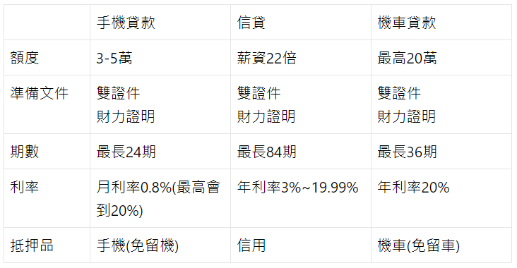 手機貸款/信貸/機車貸款比較