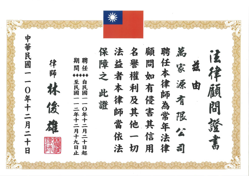 本公司聘請 林俊雄律師擔任常年法律顧問,協助本公司處理相關法律事務。